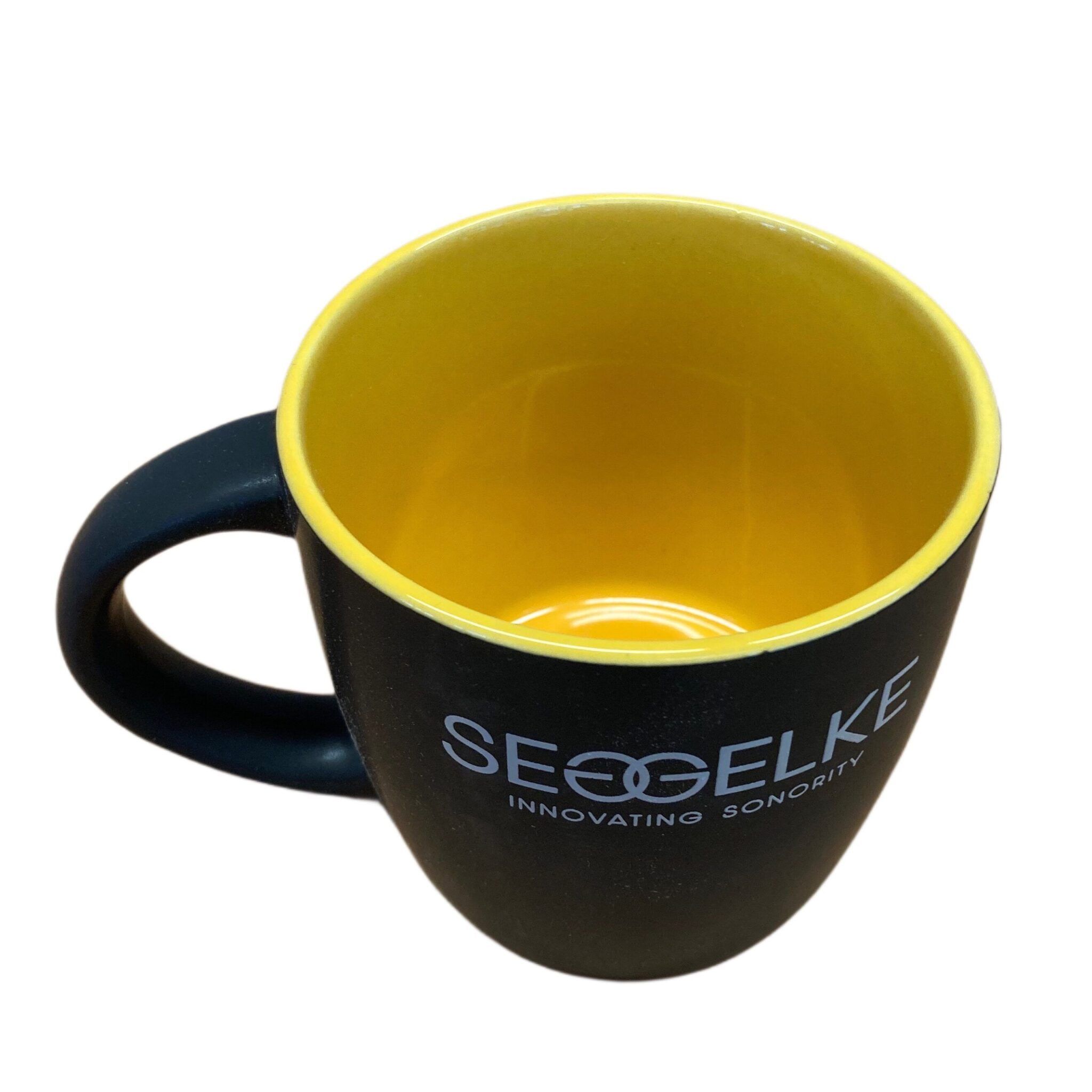 - dark gray cup with Seggelke logo and lettering