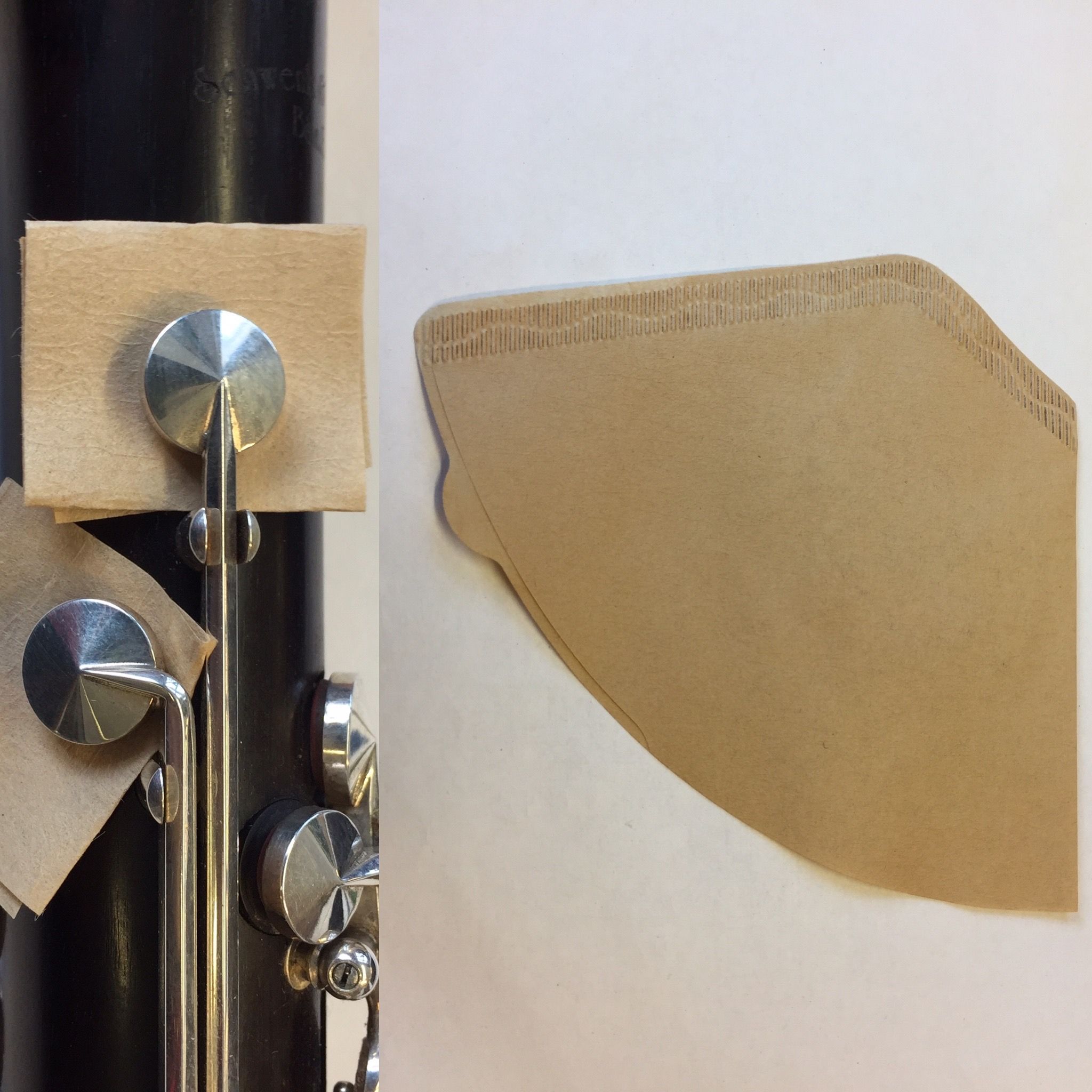 - During breaks and after playing, dismantle the instrument and remove moisture from the bore and tone holes (blow out). We also recommend clamping paper (e.g. for coffee filters or cigarettes) between the pad and the tone hole. This allows the body to dry out slowly and prevents moisture build-up around the tone hole.